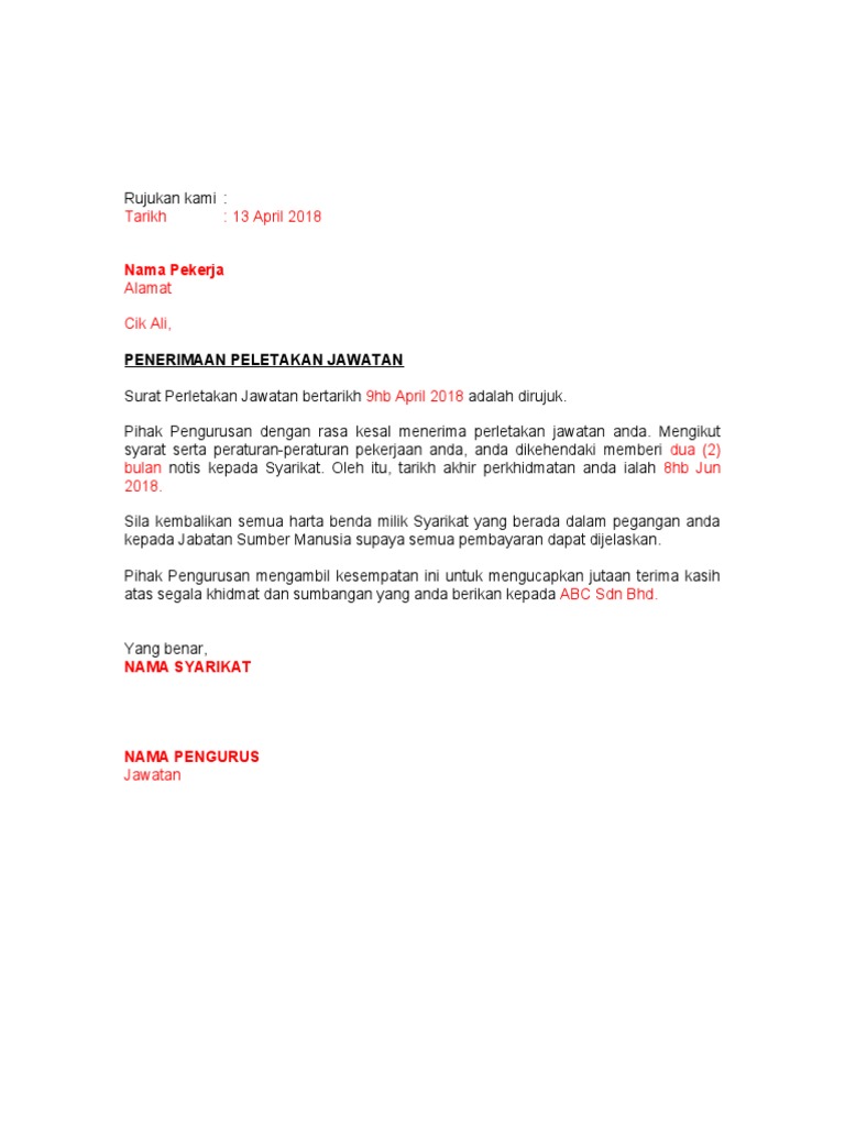 8 Contoh Surat Penerimaan Perletakan Jawatan Pdf